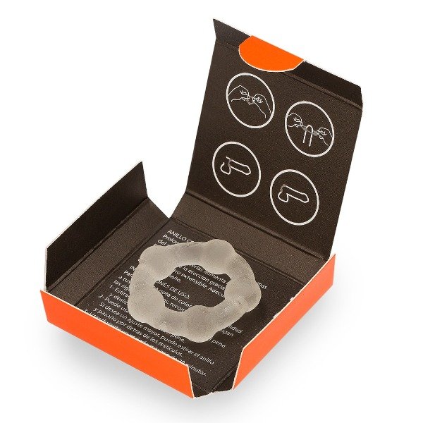 1- Estirar el anillo, colocarlo en la punta del pene y deslizarlo hasta la base del mismo.